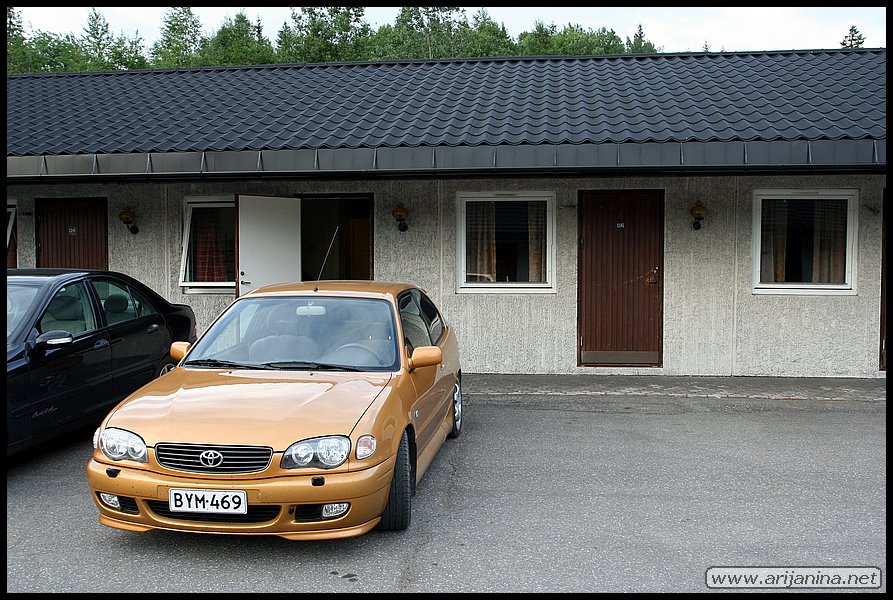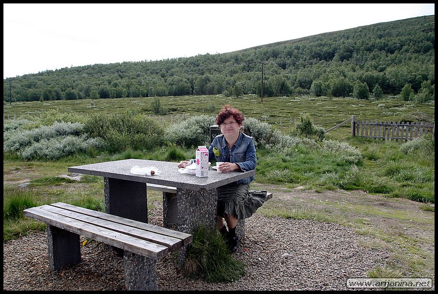 7.7.2007 Herättiin aamulla klo 6.00 pakattiin tavarat autoon ja siivottiin huoneisto ja lähdettiin jatkamaan matkaa klo 7.00. Jätimme haikeana taaksemme aurinkoisen Geirangerin suunnatessamme ensin Rv 63:sta ja sitten Rv 15:sta kohti Ottaa. Ennen Ottaa käännyimme pikku tielle ja oikaisimme E6:lle. Pysähdyimme kaupassa Dombåsissa, jatkoimme E6:sta pohjoiseen kohti Trondheimiä, jossa maksoimme tie maksun 3.1 € (25 NOK). Kävimme syömässä Klo 17.00 Namsskogan Hotellilla hampurilaisateriat ja jatkoimme matkaa kohti Mo i Ranaa. Vuokrasimme huoneen Mo i Ranasta Bechs hotel & campingiltä hintaan 63 € (500 NOK). Kilometrejä päivälle kertyi 855. |